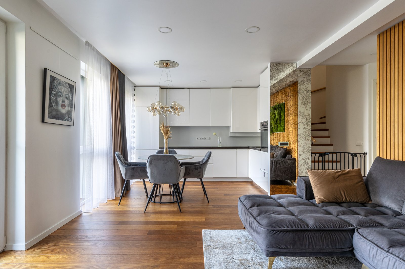Ieškote jaukios, stilingos ir komfortiškos gyvenamosios erdvės? Šis trijų kambarių butas per du aukštus su privačia terasa, balkonu ir nuosavu kiemeliu – tai išskirtinis pasiūlymas Jums!